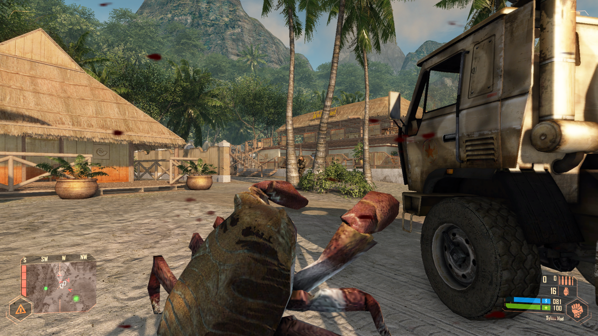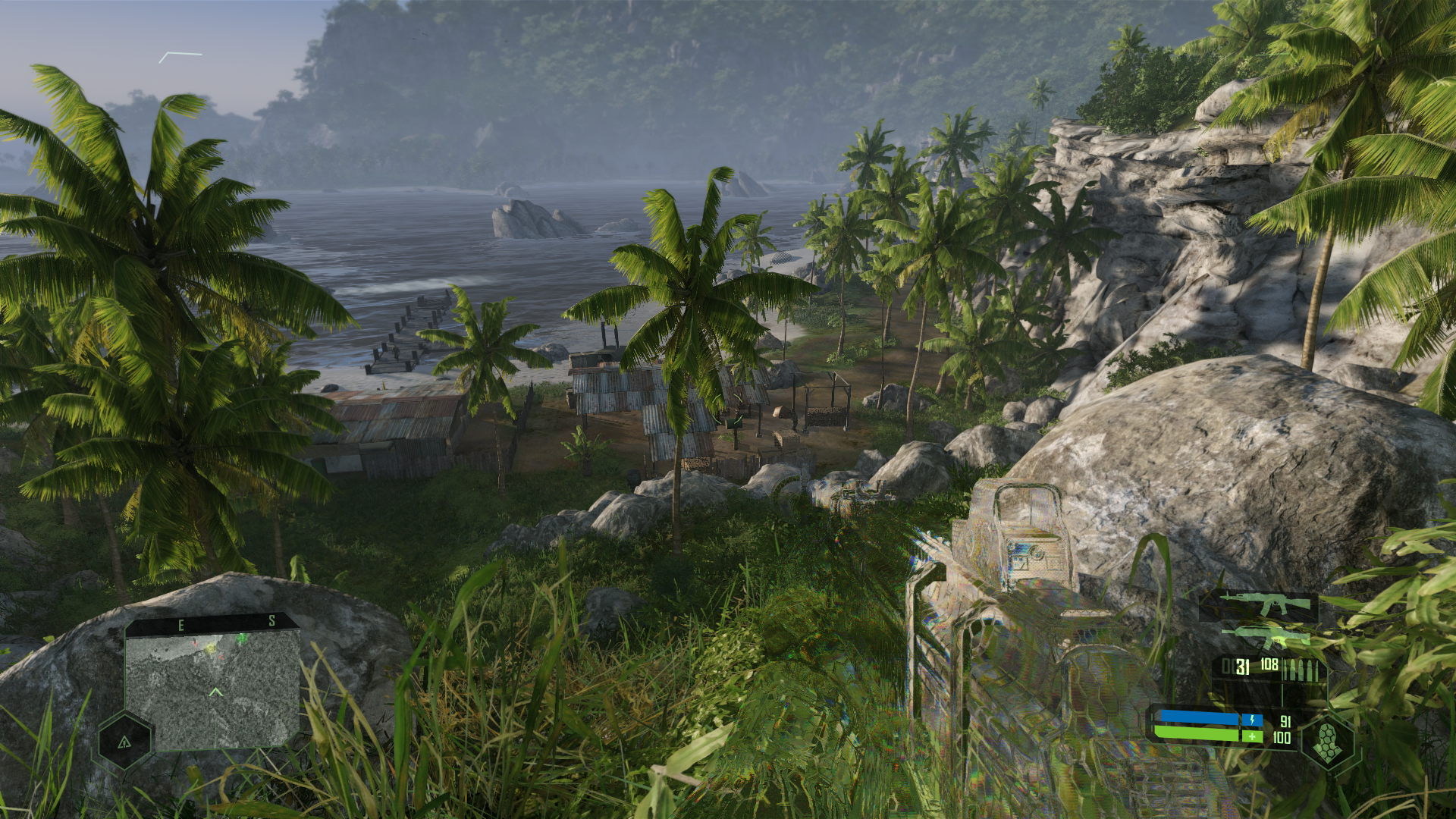 Из технологических особенностей нельзя не отметить физику. Она относительно честная и распространяется даже на самого игрока: если разогнаться в режиме максимальной скорости и влететь в камень — урон будет. Есть и частичная разрушаемость: хлипкие постройки можно снести взрывами, силой нанокостюма или банально танком. Деревянные домики трещат, объекты разлетаются, и всё это подчиняется физике, а не скриптам.