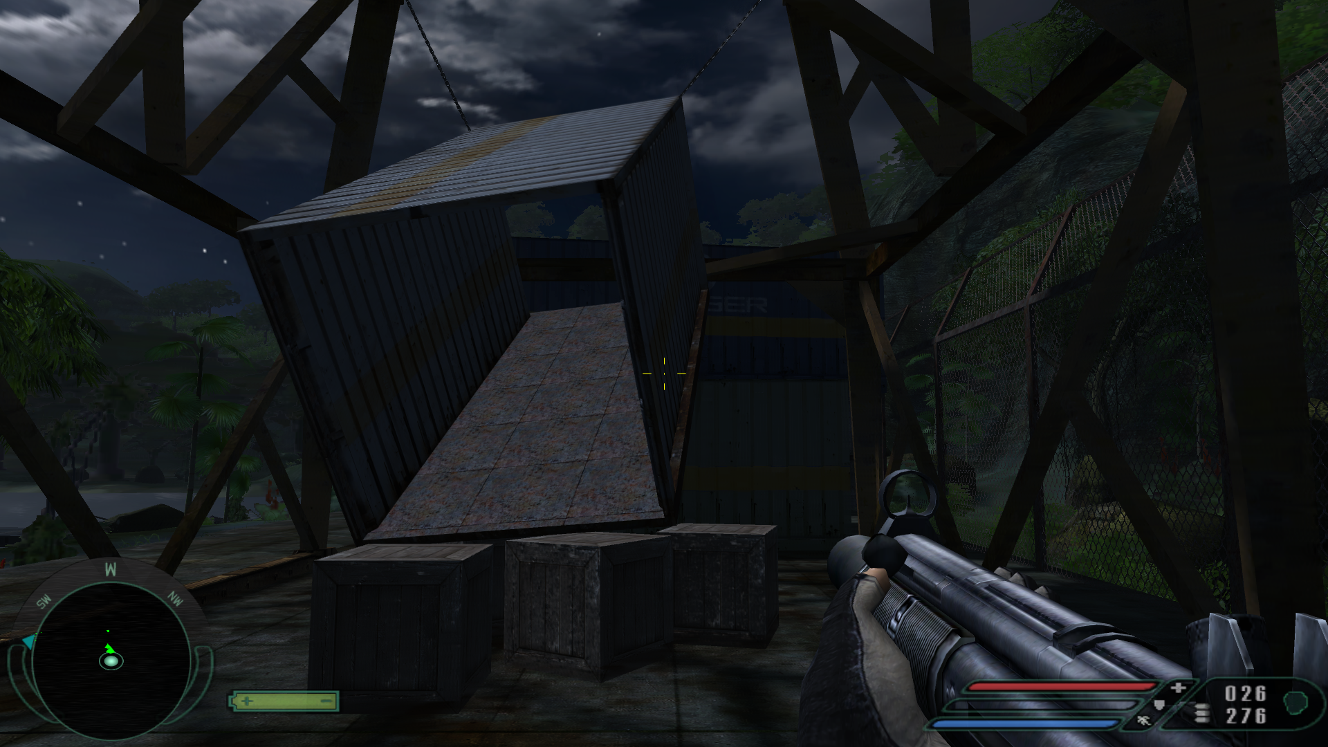 Уровни — это настоящие километровые острова, открытые поля, бухты, джунгли, подземные комплексы. В 2004 году подобные размеры были чем-то невозможным, и движок за это требовал жертв — преимущественно в виде владельцев скромных видеокарт.