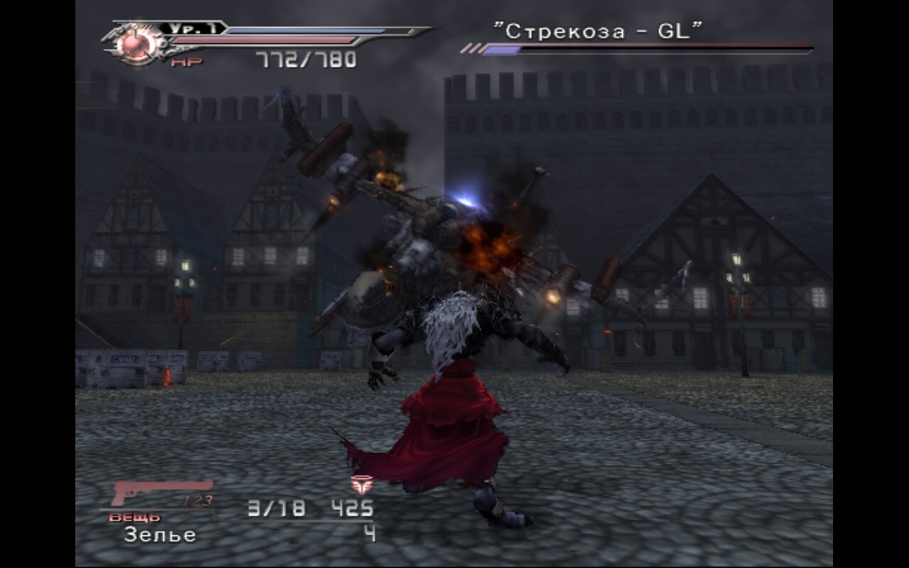 Инвентарь Винсента довольно скромный: мало зелий, патронов — по 500 штук на каждый ствол (с учетом того что цербер выстреливает по 3 пули заканчиваются они быстро). Основной арсенал — три базовых вида оружия: револьвер, автомат и винтовка. Любое из них можно модифицировать — поставить прицел, заменить ствол ради дальности или урона, встроить материю для магических атак, повесить аксессуары.