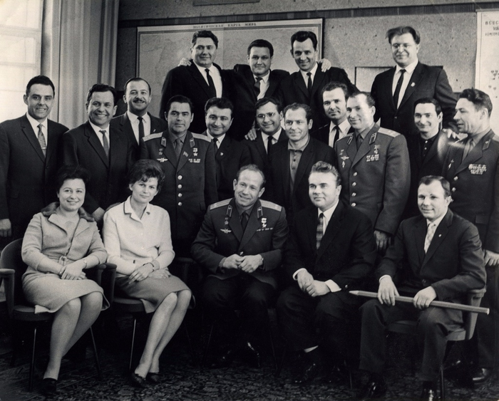 «Карандаш Гагарина». 1 января 1967 г. Первый слева в первом ряду – Юрий Гагарин (на карандаше надпись: «С Новым Годом 1967»). Третий слева во втором ряду – Отари Евтихиевич Черкезия (в будущем Предсовмина ГССР); четвертый слева – Андриян Николаев.