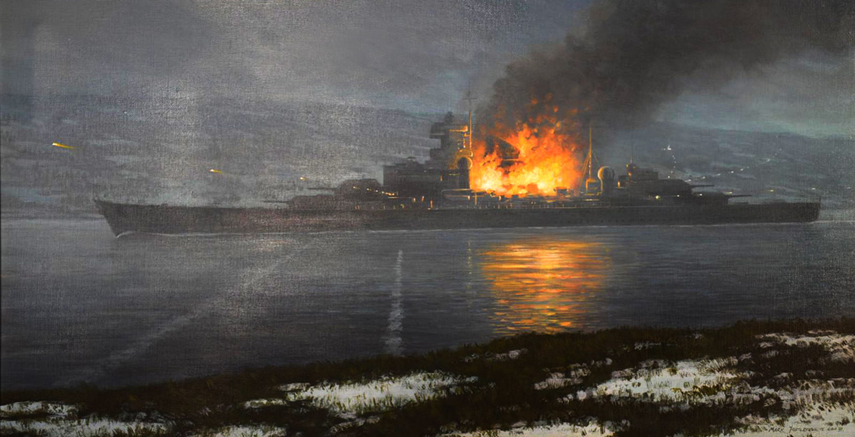 Сцена из норвежского художественного фильма, где показана схватка береговой батареи против немецкой эскадры, в ходе которой был потоплен новейший тяжелый крейсер "Блюхер".