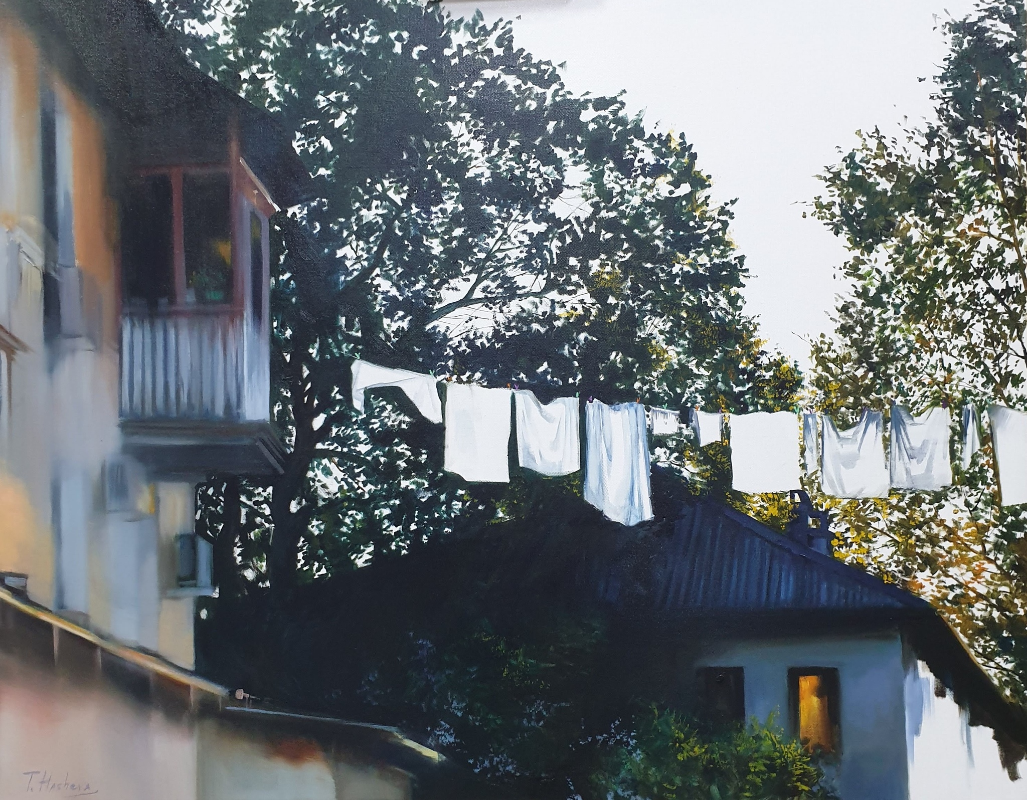 Сначала картина задумывалась совсем другой. Но, в какой то момент работы, решила, что нужно остановиться и больше не прорабатывать.