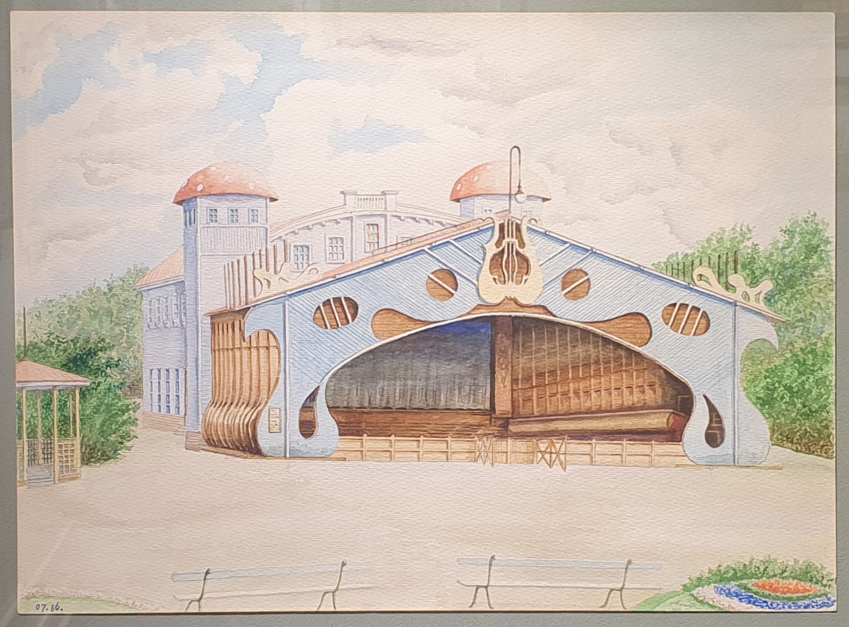 Летний театр в саду общественного клуба (Первомайский парк). Разрушен.