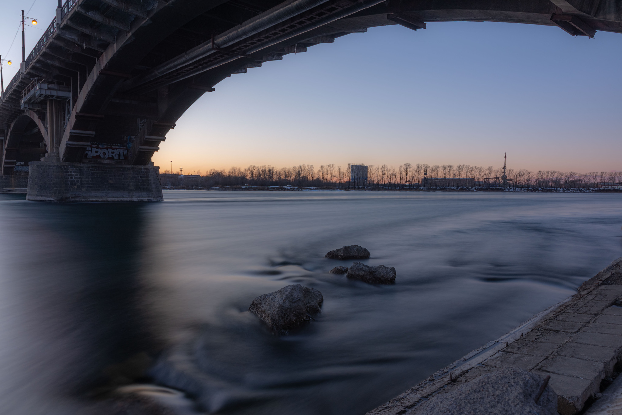 Закат под мостом на длинной выдержке.