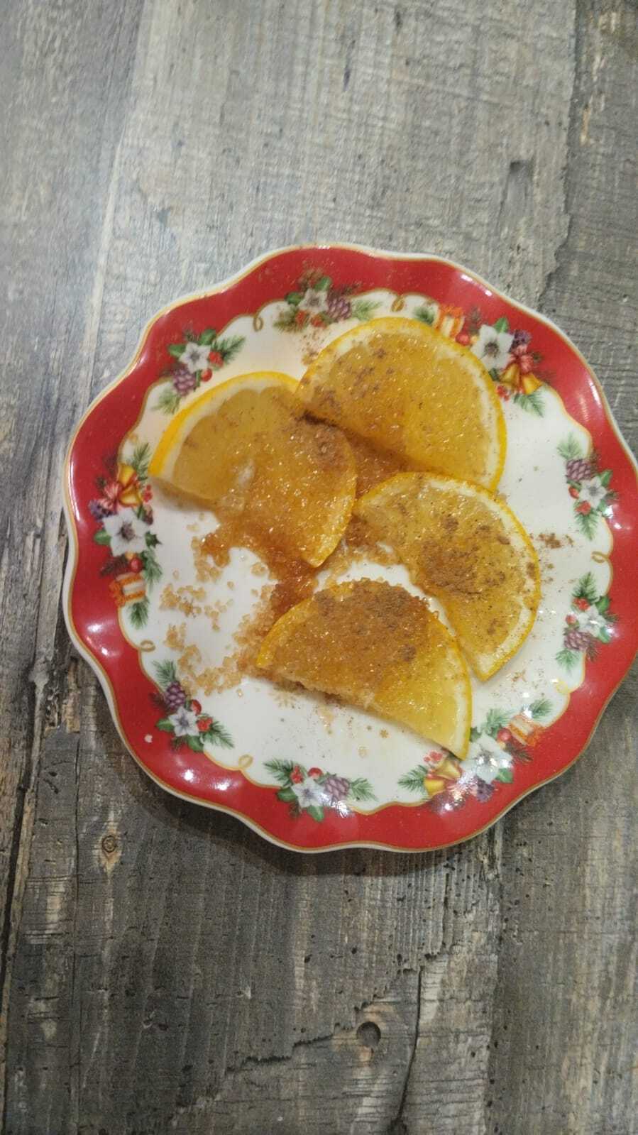 По слухам, данную закуску придумали для нашего самодержца Николая II. Он с утра любил выпить. Но вот супруге его эта привычка не нравилась. И чтобы не злить вторую половину, император наливал коньяк в кружку, как чай, и пил вприкуску с лимоном и сахаром. Мол, ещё запах от коньяка отшибало. Да и дворцовая кухня постаралась, создавая множество вариаций. Лимон нарезался дольками и посыпался сверху сахарной пудрой и молотым кофе или просто сахаром с сладкими специями. Поэтому к столу мы подали дольки сладкого бухарского лимона с тростниковым сахаром и корицей. С коньяком сочетается идеально, но перебивает вкус хорошего коньяка. Но сейчас праздник, почему бы и да. И пусть французы давятся, смотря на нас, им не понять нашей широкой русской души. Коньяк мы подобрали соответствующий, поставляемый к двору императора России.