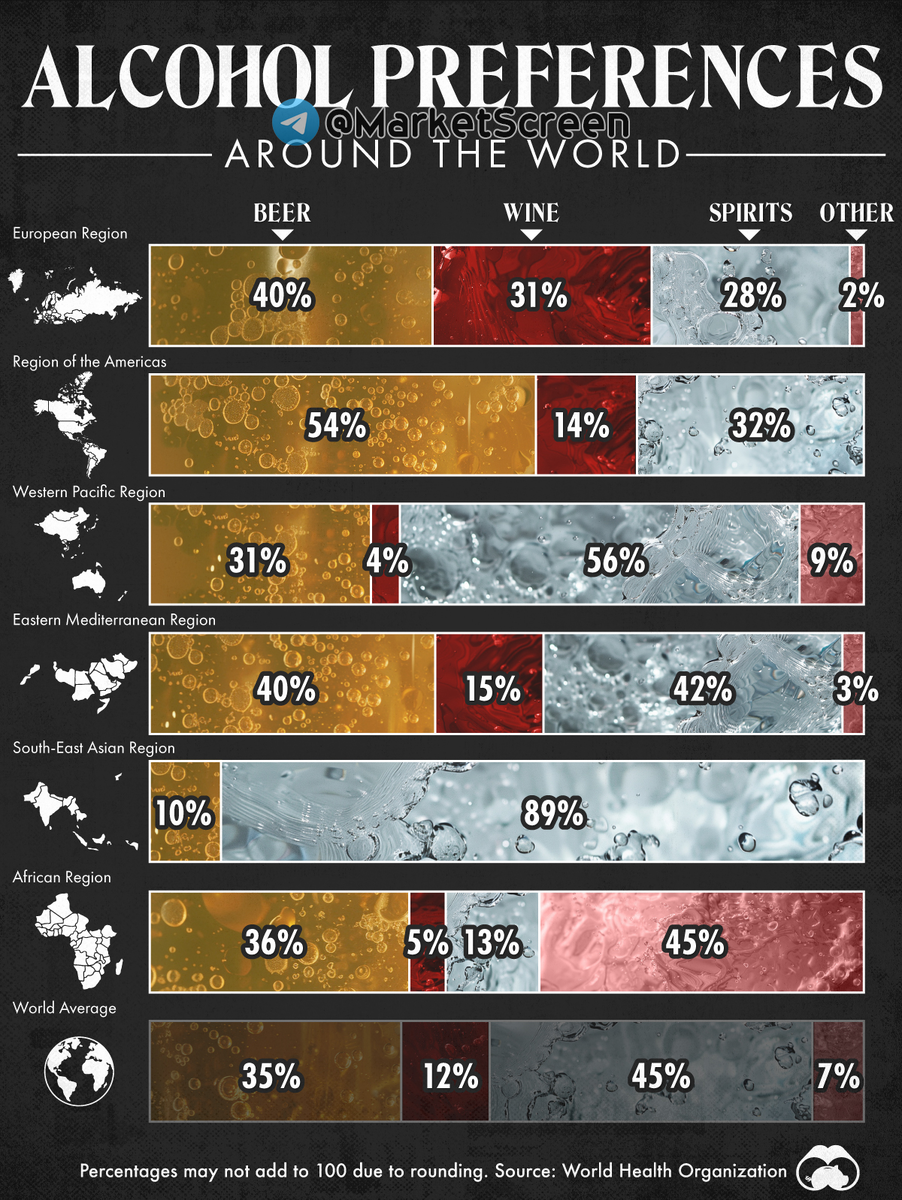 Пиво является самым популярным алкогольным напитком в Европе и Северной и Южной Америке. Во всём же остальном мире, и по миру в целом, предпочтения отдаются тяжелым спиртным напиткам. Разве что кроме Африки, где в почёте «Отхеры». Какие-нибудь местные лухури-продукты.