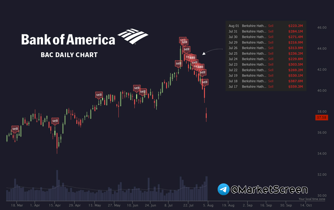 Места, где Баффетт скидывал акции Банка оф Америка.