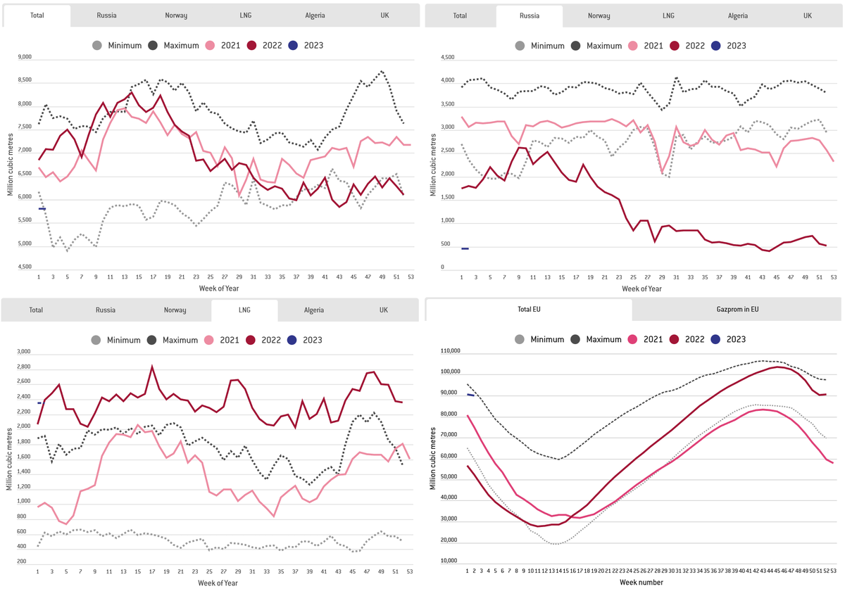 Bruegel обновил данные по импорту газа в Европу. Информация по 10.01.2023