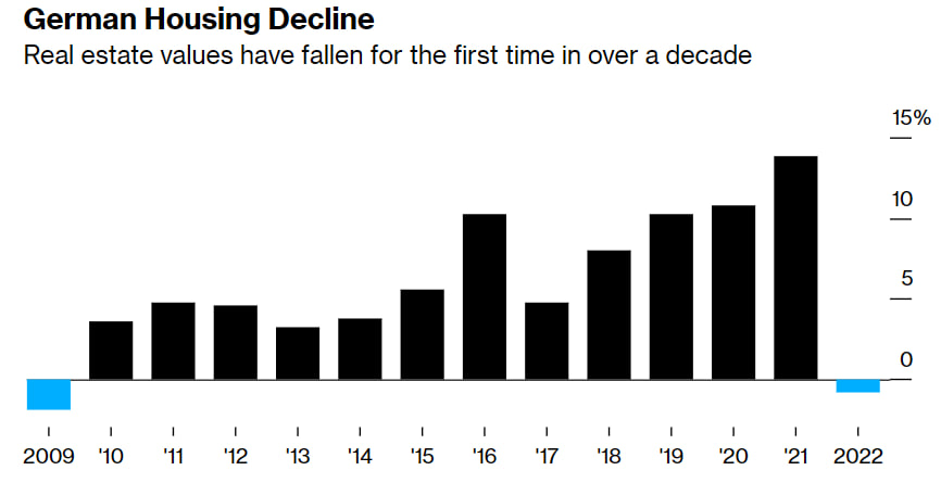Согласно данным ЕЦБ, объем новых кредитов на покупку жилья в Германии упал на 30% за четыре месяца после принятого в июле прошлого года решения о повышении процентных ставок. Впервые с 2011.