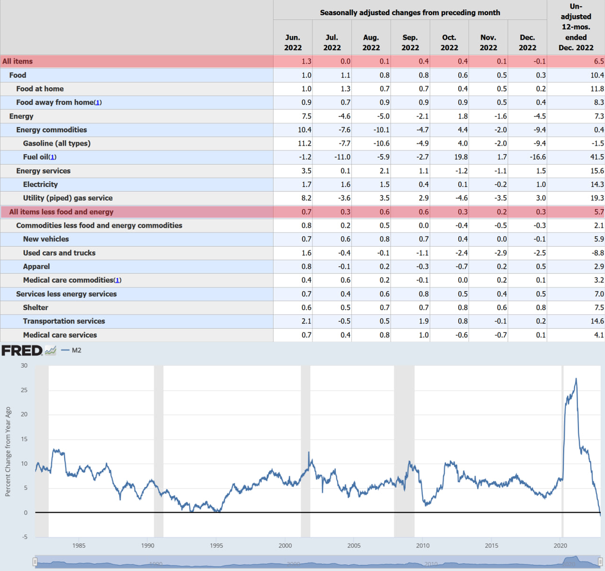 Кстати, денежная масса М2, а точнее её изменение год к году, ушло в отрицательную зону. Рекордные значения за 40 лет. Федрезерв старательно вытягивает деньги из системы.