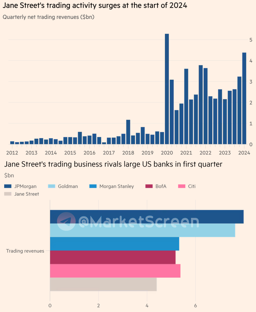 Ошеломляющие цифры подчёркивают, как Jane Street незаметно превратилась в торговый центр на мировых финансовых рынках, обогнав ряд крупных конкурентов и банков.
