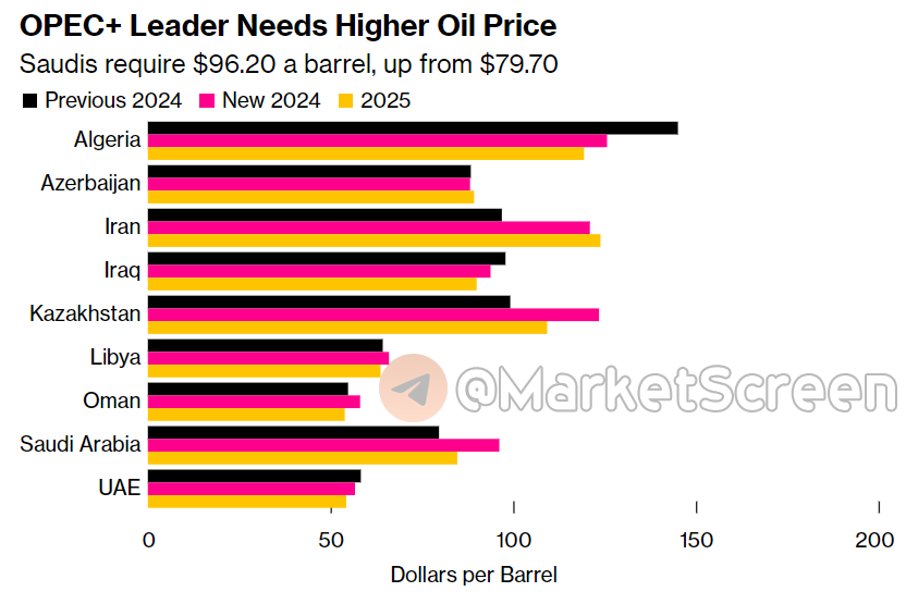 Если предположить, что королевство смягчит сокращение поставок и восстановит добычу до 10,3 млн баррелей в день в следующем году, то, по прогнозам МВФ, цена безубыточности должна снизиться до 84,70 доллара за баррель.