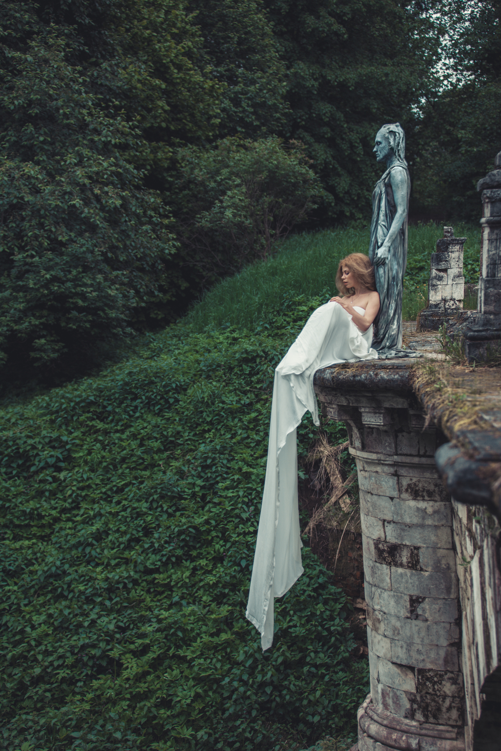 Вторая часть нашего фотосета со статуей прошла в глубине территории усадьбы Середниково, где мы нашли потрясающе красивый старый мост.