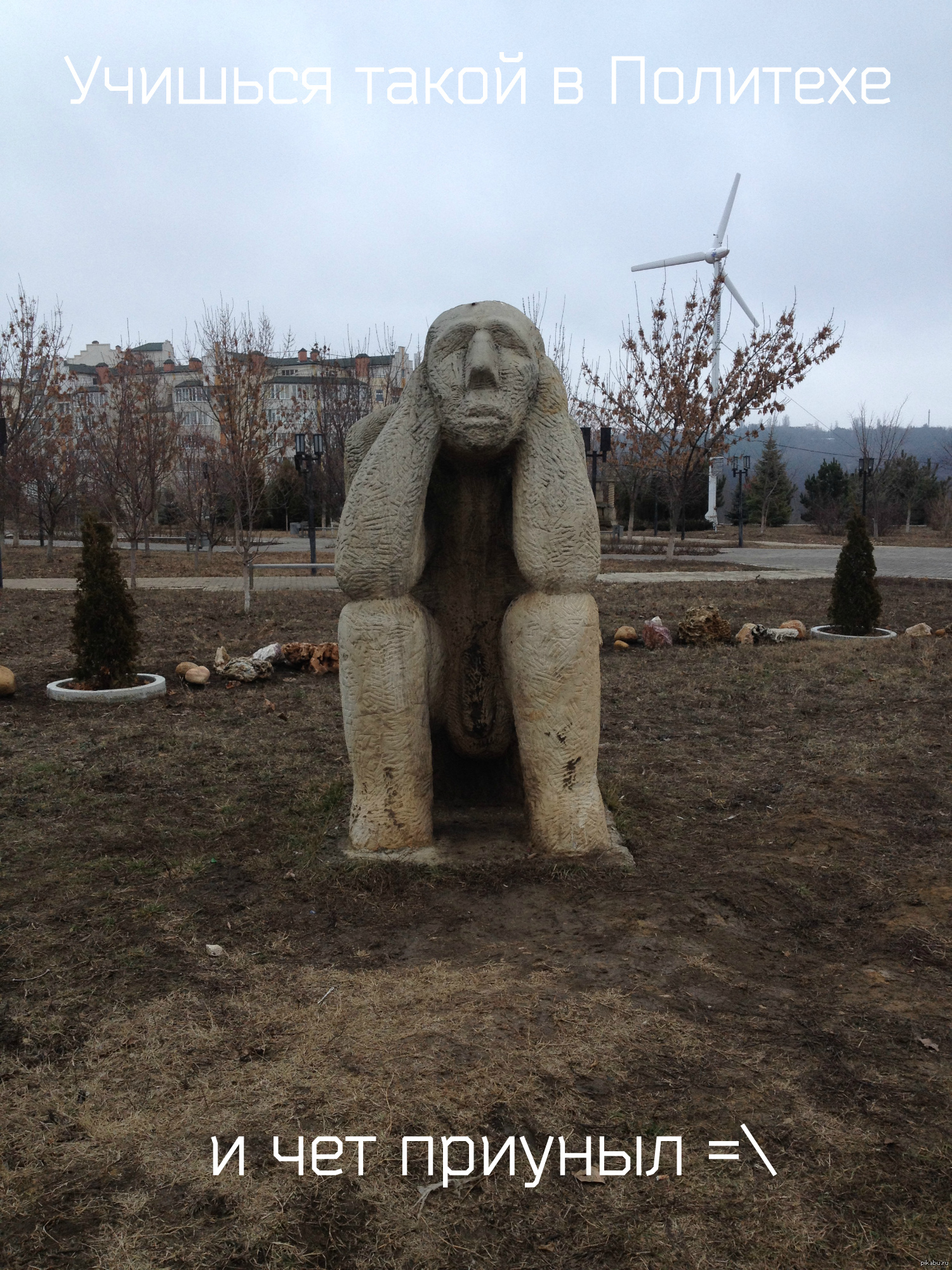 barych 10 лет назад Статуя в парке универа какбэ намекает Рышкановка,ул.Студенческая,Политех [моё] Кишинев Молдова Политех Скульптура Приуныл