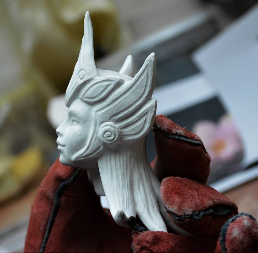 Первым этапом в процессе является создание модели – модель создаётся из пластилина, отталкиваясь от первоначального образа или образа, задуманного автором – можно легко редактировать мелкие детали и всю модель в целом. На данном этапе мы редко снимаем фото, т.к. может сложиться неверное впечатление о том, как будет выглядеть статуэтка в будущем.
