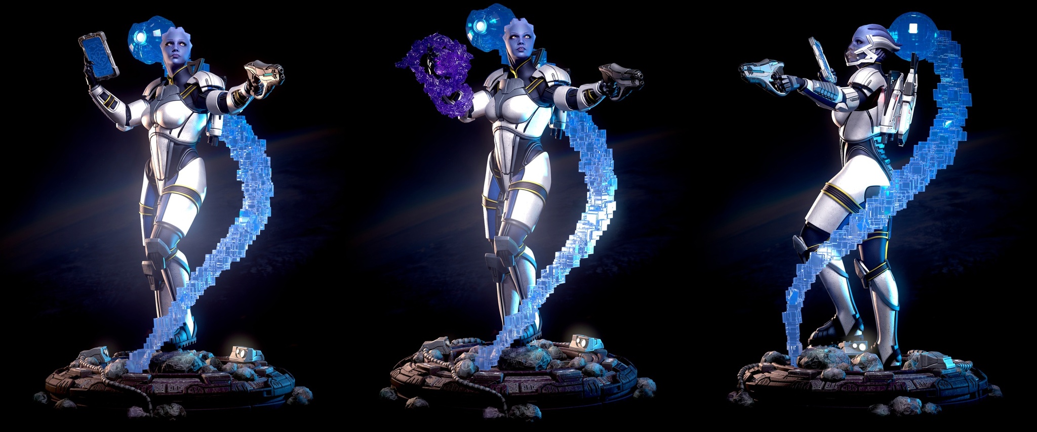 1) Лиара в броне от Семёна Болотникова (автор 3д модели Гарруса) со сменными руками и головами, маской и целым арсеналом оружия!