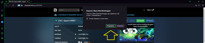 3) даем разрешение браузеру передать команду Steam клиенту.