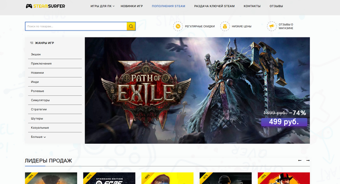 Оставляю отзыв, чтобы предостеречь других. Сайт steamsurfer.com позиционирует себя как площадку по продаже цифровых ключей и игр, но на деле — это мошеннический ресурс.