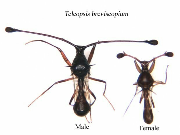 А может просто самка огромная, в разы больше самца. Вот природа и разнесла ему глаза, чтобы из-за своей половины видно было хоть что-то....