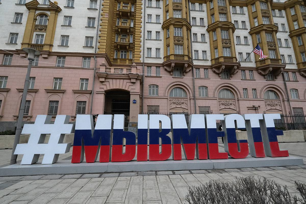 Буквы ZVO, конструкция «Мы вместе» стояли у американского посольства в Москве с ноября 2023 года.
