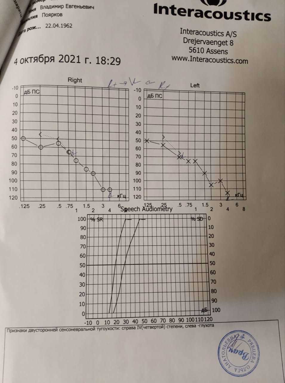 I степень тугоухости, легкая