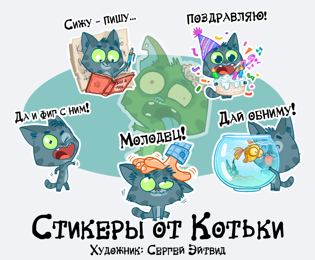 Друзья, добавили ещё немного новых позитивных стикеров! Общайтесь вместе с Котькой! 😉
