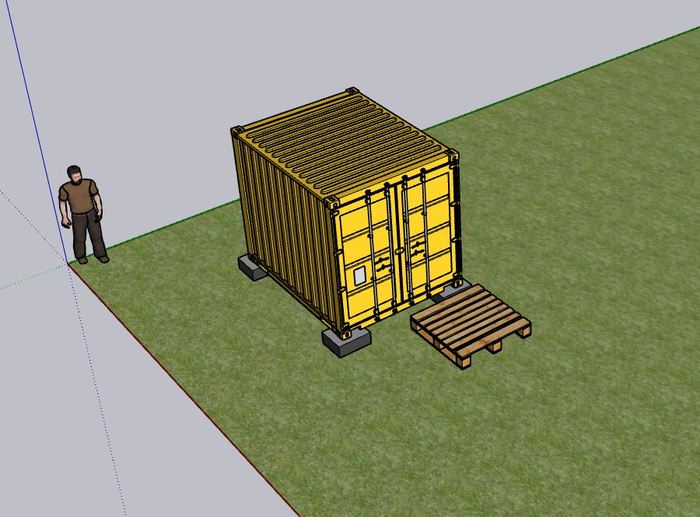 А видите на фото жёлтую прелесть? Эту мечту многих бизнесменов районных рынков! Да, это он – железнодорожный пятитонный контейнер. Именно на него пал выбор в результате мозгового штурма на тему - а где нам хранить наши сокровища! Три недели поисков и он у нас. Еще и пару поддонов в нем бонусом досталось.