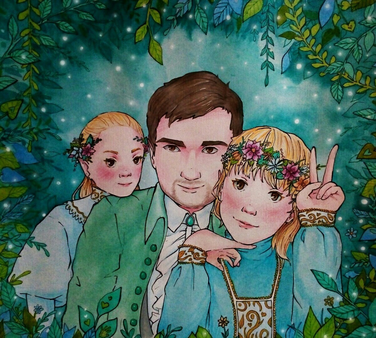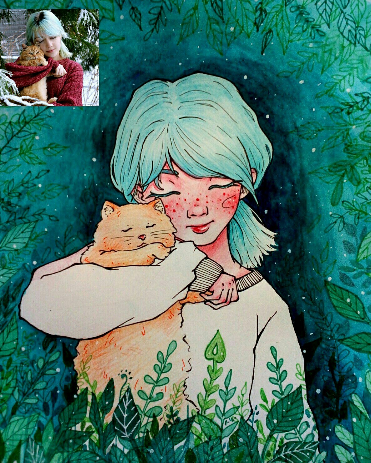 Спустя время написала девушка, попросила нарисовать её с любимой собакой в обнимку и чтобы было по летнему)