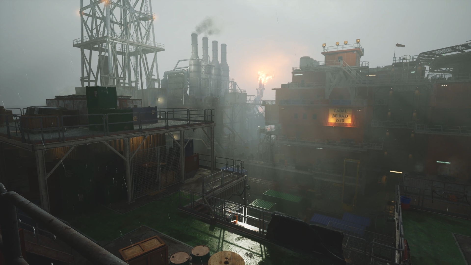 Помимо Каза и других героев, которых мы встречаем по сюжету, не менее важным действующим “лицом” в повествовании является сама нефтедобывающая платформа “Beira D”. Благодаря старанию левелдизайнеров, детально воссоздавших ее антураж на мощностях Unreal Engine, каждый внутренний и внешний отсеки выглядят максимально аутентично. А от круто реализованных погодных эффектов в виде порывистого ветра и хлещущего дождя самому становится холодно и хочется поскорее вернуться за гермодверь, чтобы обогреться возле радиатора.