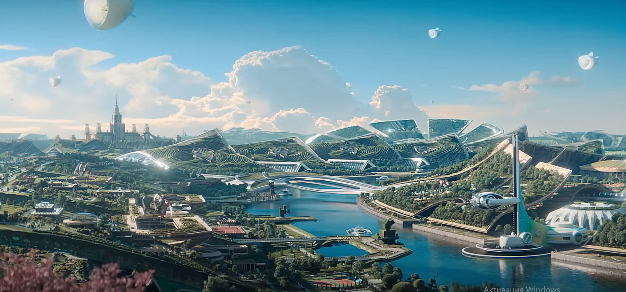 Мир будущего показан очень вяло. Картинка красивая, похоже, что на неё вбухали мегатонны бабла, раз фильм начинается с перечисления спонсоров и даже даётся нативный продакт-плейсмент Сбера. Но главный герой вообще никак ничего даже не может толком рассмотреть, потому что это просто не предусмотрено сюжетом. Ладно, если флипнуть до космодрома не судьба, то придумали бы что-то другое.