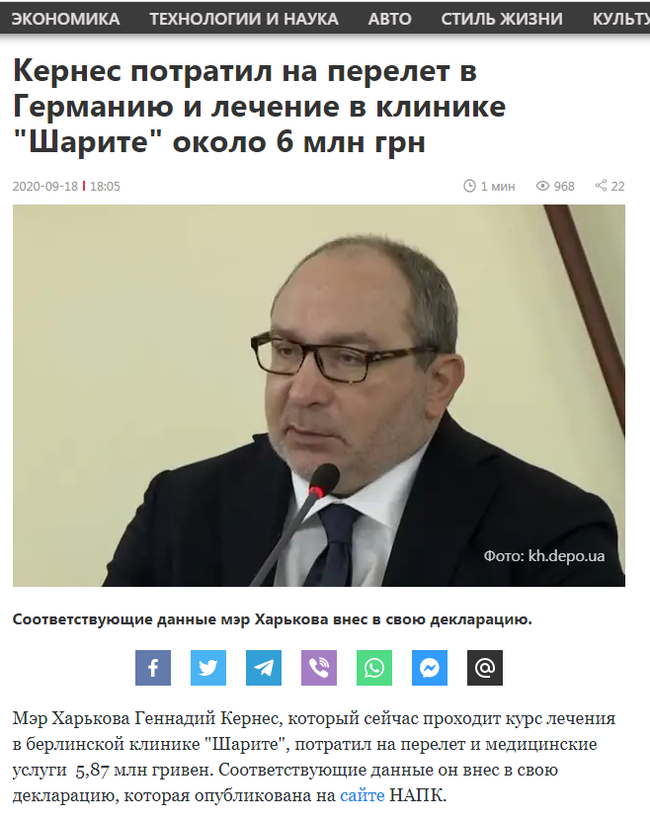 Вечером 16 сентября за Геннадием Кернесом из Нюрнберга прибыл джет Bombardier Challenger 604, принадлежащий компании FAI rent-a-jet, чтобы транспортировать его на лечение в Германию.