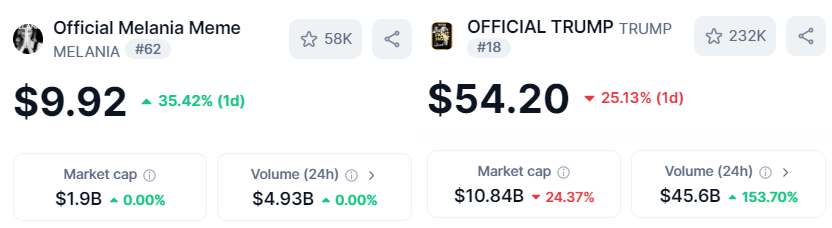 2 JediMik Стоимость Мелании в 5 раз меньше стоимости Трампа 10 месяцев назад Market cap - рыночная стоимость, Volume - дневной объём торгов чего только не бывает в 21 веке :) [моё] Юмор Криптовалюта Экономика Ещё 0