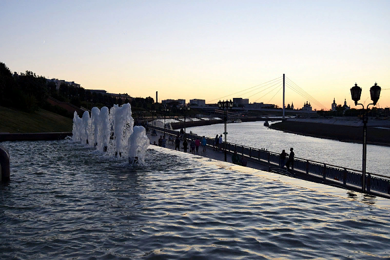 Вечером посмотреть на светодинамический фонтан вечером возле театра Драмы на площади 400х летия Тюмени: