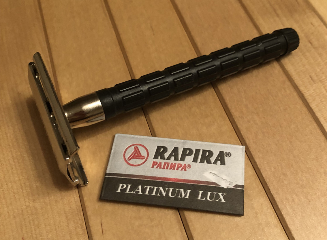 Ну, а теперь переходим к самому главному – для того чтобы побриться Т-образным бритвенным станком, непосредственно нужен сам станок. Можно сразу приобрести себе дорогой и именитый бритвенный инструмент, но вдруг ВКБ Вам не зайдет?!, что тогда? Для начала, я бы предложил взять что-то попроще – например, бритвенный набор «RAPIRA Platinum lux» (проверено временем и людьми).