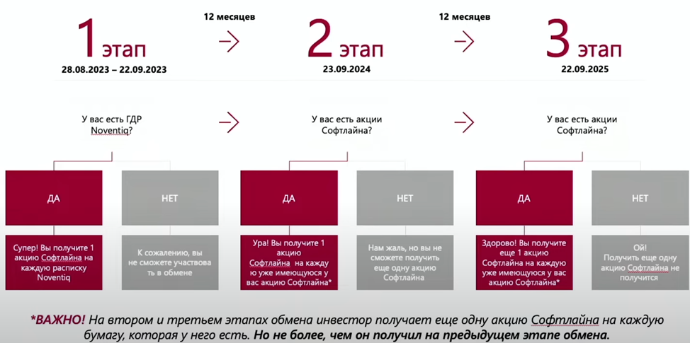 Владельцам гдр Noventiq предлагалось обменять свои расписки на акции ПАО Софтлайн в соотношении 1 к 3.