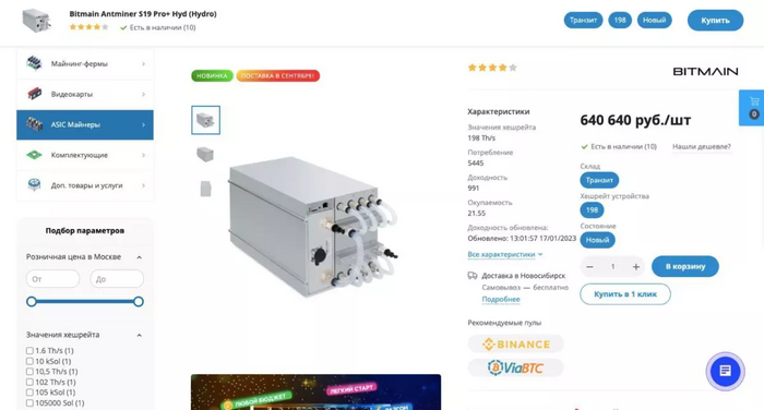 В Москве майнить очень дорого. Для сравнения посчитаем, сколько можно заработать с таким же майнером в Новосибирской области.