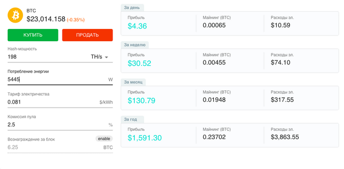 Стоит учесть, что доходность рассчитывается по текущему курсу биткоина. Когда цена вырастет, то и доход тоже.