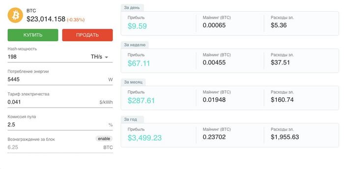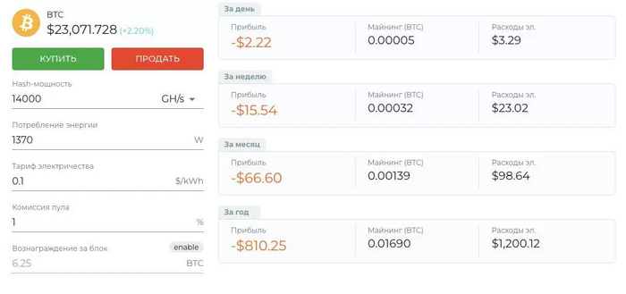В пересчете на рубли по курсу на 25 января доход составит 110 574 рублей в год. Получается, что только покупка майнера будет отбиваться чуть меньше 6 лет.