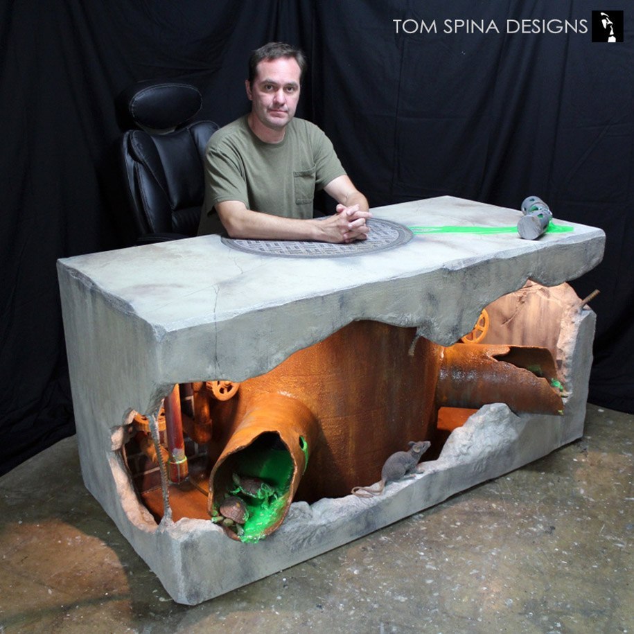 Том Спина (Tom Spina) создал стол - диораму, рассказывающую историю рождения популярнейших персонажей - Черепашек ниндзя.