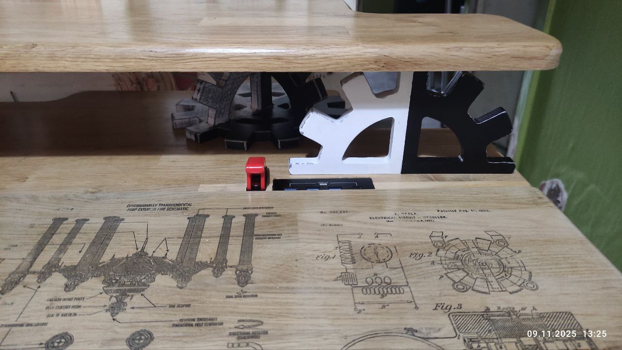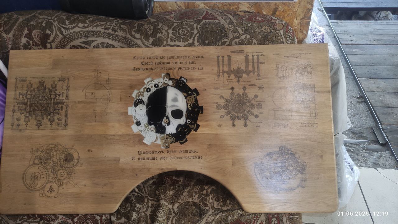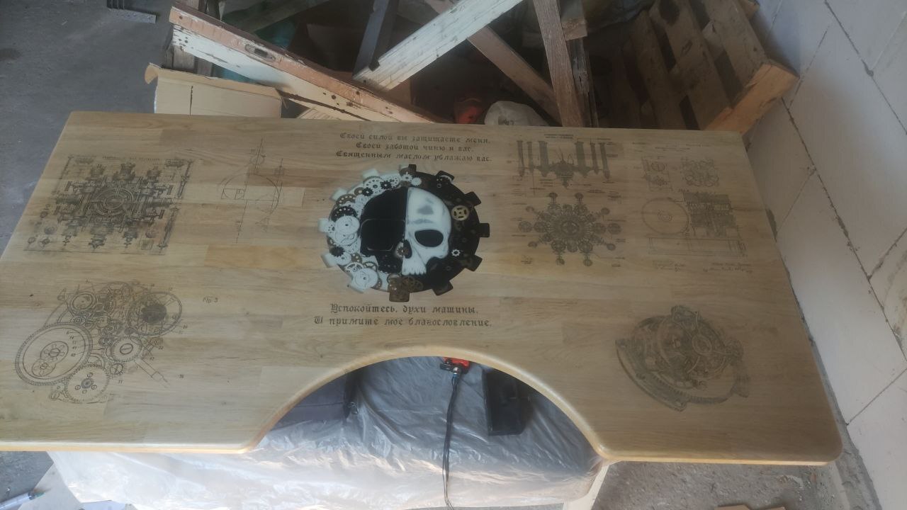 В планах переделать основную столешницу. Хочу купить лазерный гравер и нанести изображения граверовкой, должно быть офигенно. Также пропитать специальным маслом с эффектом состаривания.