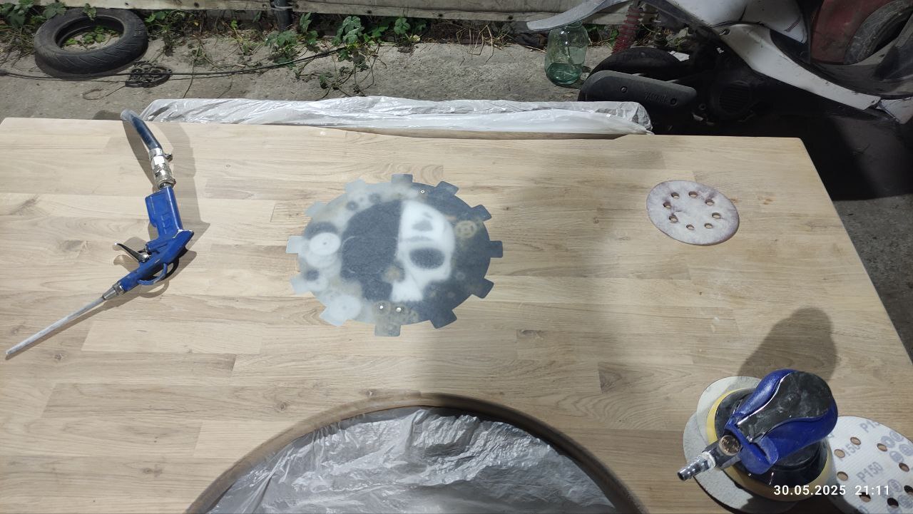 Приступил к подготовке поверхности столешниц после эпоксидки. Шлифовать эпоксидку оказалось достаточно сложно. Вывести до состояния зеркала так ине смог, но если не присматриваться, то выглядит хорошо.