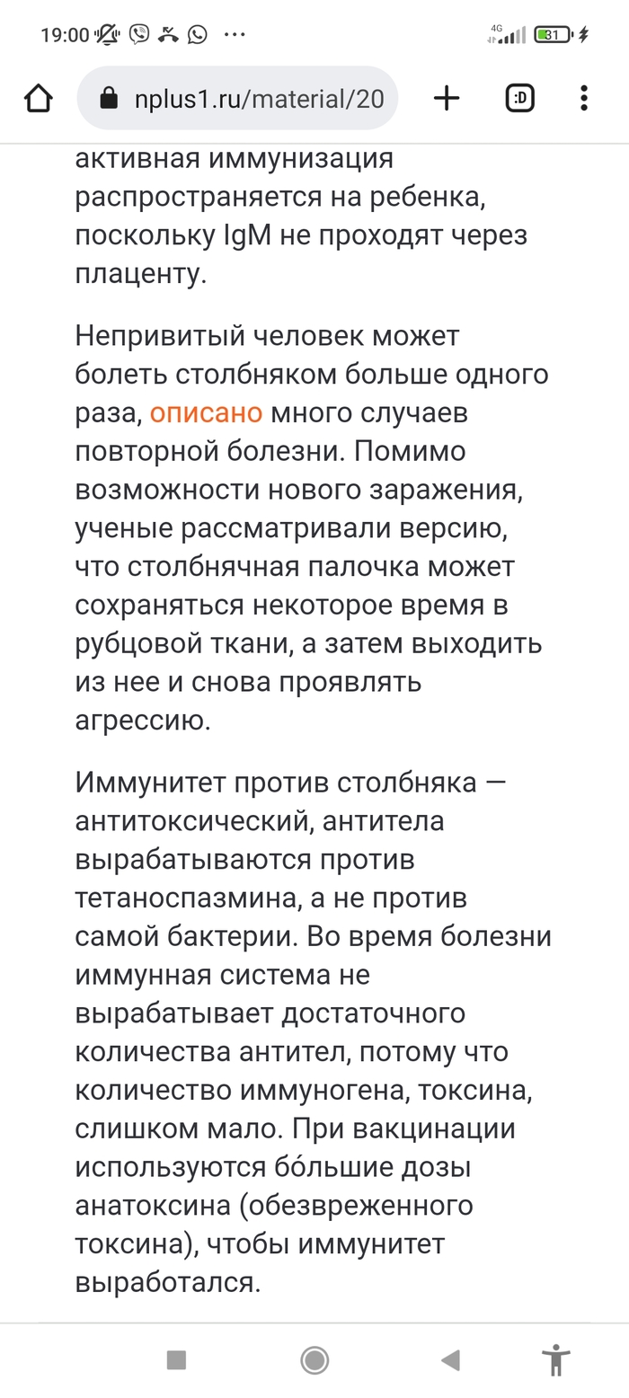 Вишенка на торте в том, что статья о разных формах столбняка и в том числе, лёгкой, рецидивирующей и хронической висит прямо на сайте Роспотребнадзора. Все желающие с этой статьёй могут ознакомиться самостоятельно, прежде чем рассказывать, брызгая слюной про ушедшие сроки. Впрочем, про это я уже говорил.