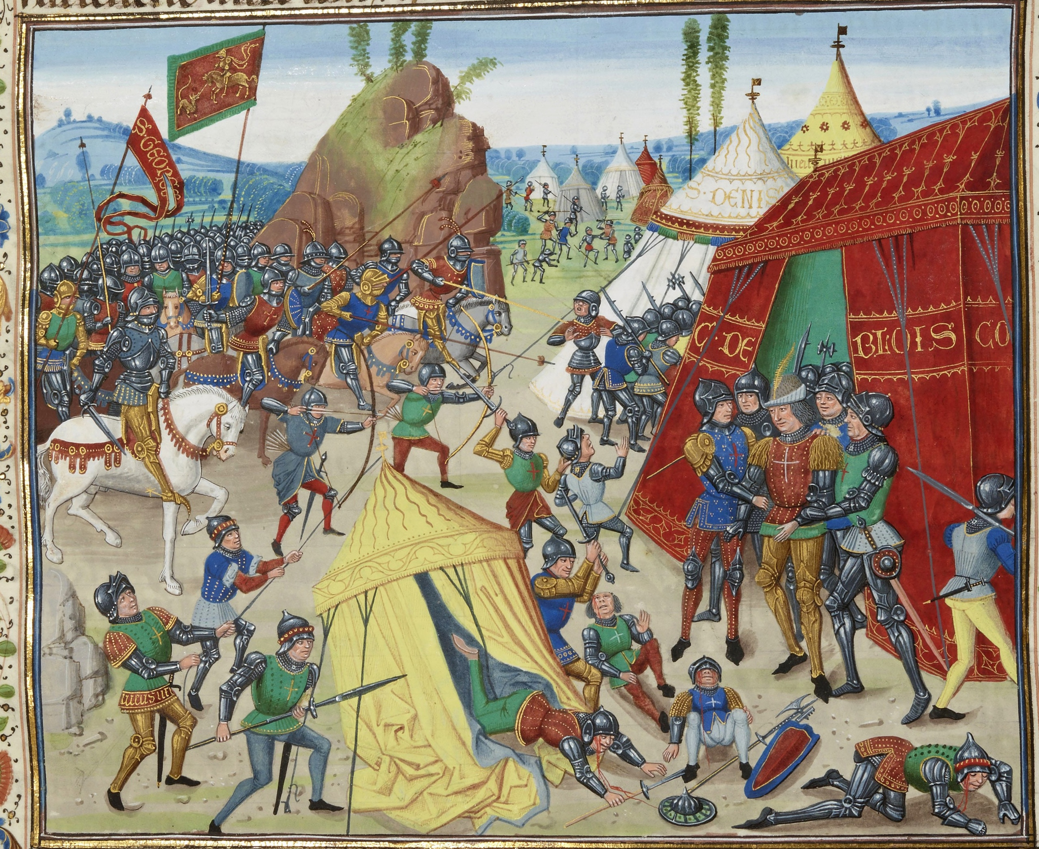 Пленение Карла Блуасского, герцога Бретонского, в сражении при Ла Рош-Дерьен. Миниатюра из Хроник Фруассара