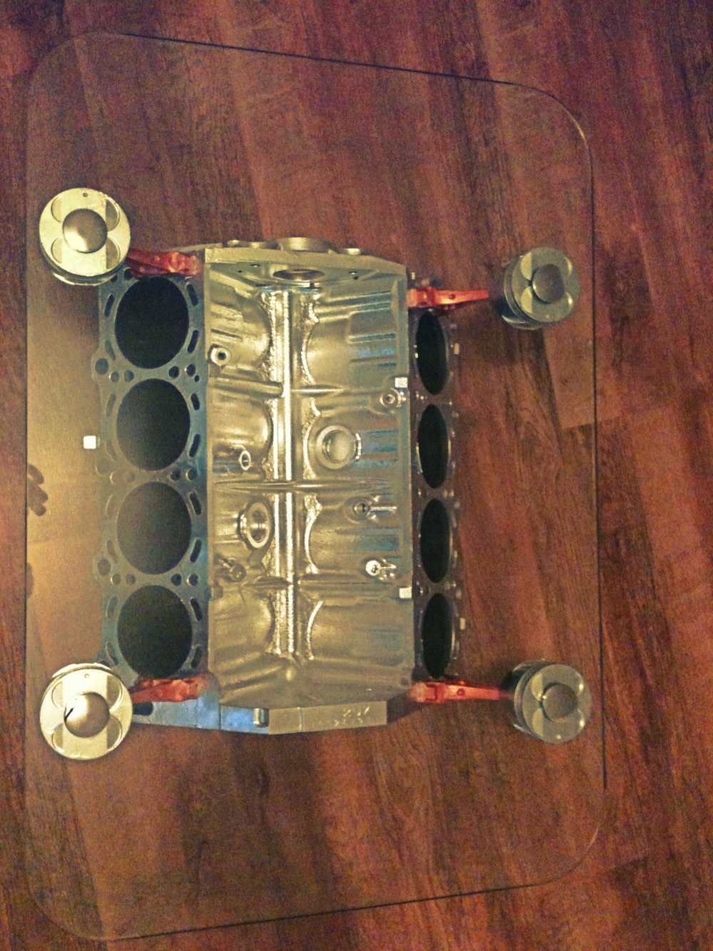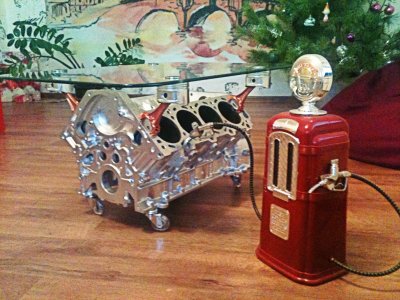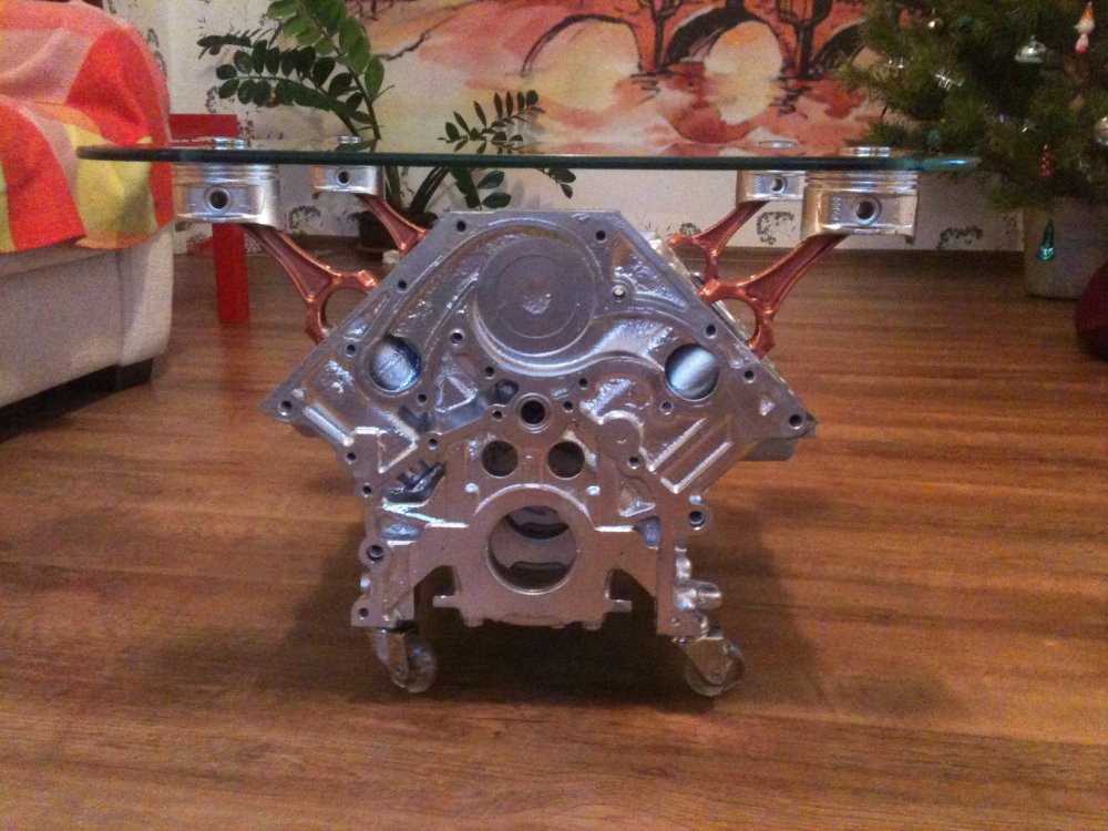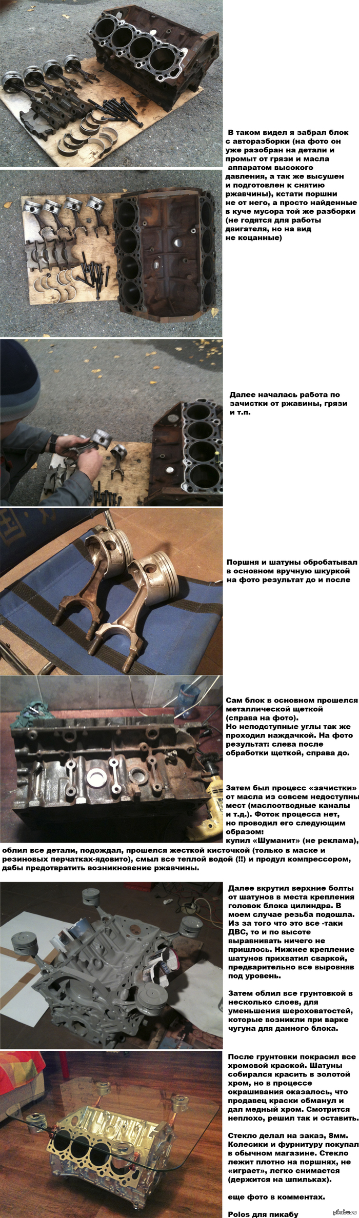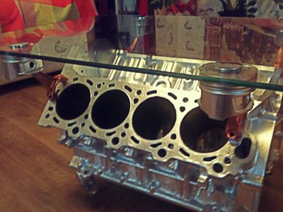 На 3й фото - диспансер, полгода назад любимая подарила со словами: "надеюсь когда-нибудь у нас все-таки будет столик из двигателя и они будет отлично на нем смотреться" :)