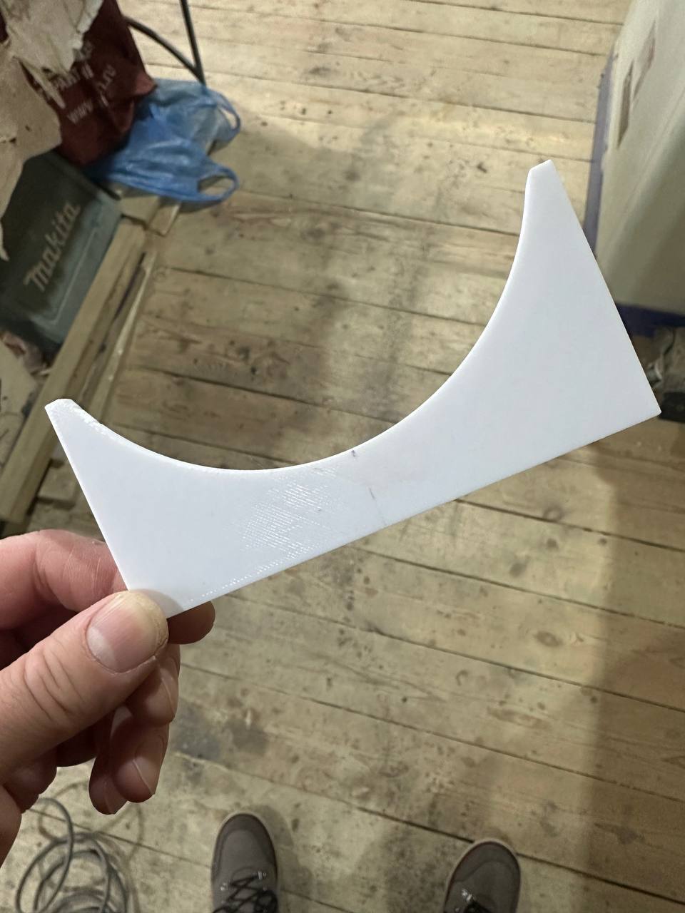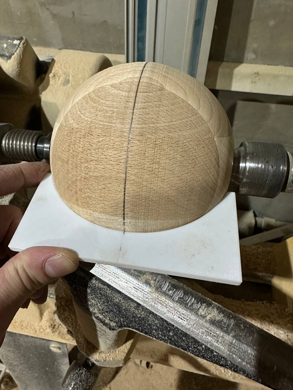 Дальше в дело врывается любимая игрушка последних месяцев – 3д принтер. Так как шары я изготавливаю далеко не каждый день, а точить в этот раз решил их вручную, делаю шаблон для удобства. Он должен повторять расчетный радиус шара.