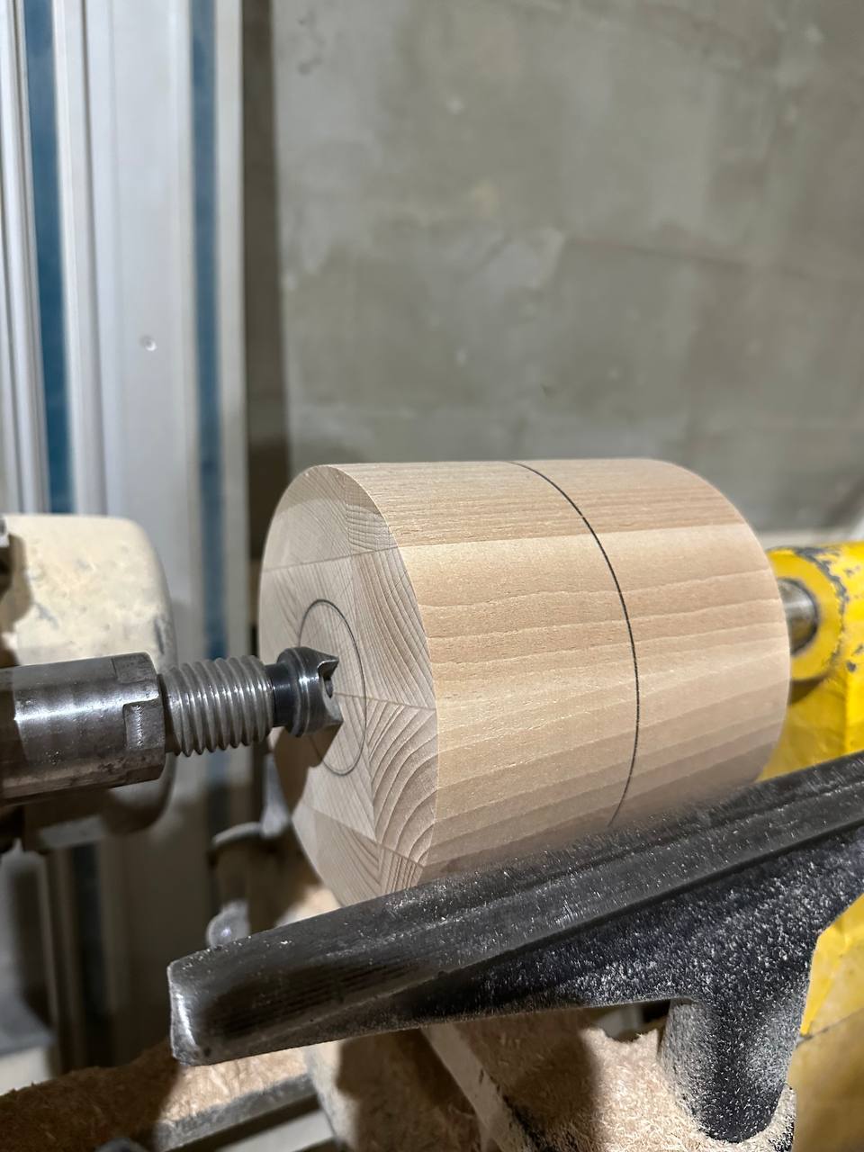 А теперь начинаем аккуратно от центра срезать края. На торце я разметил уровень, к которому нужно сводить радиус. Точим, точим…