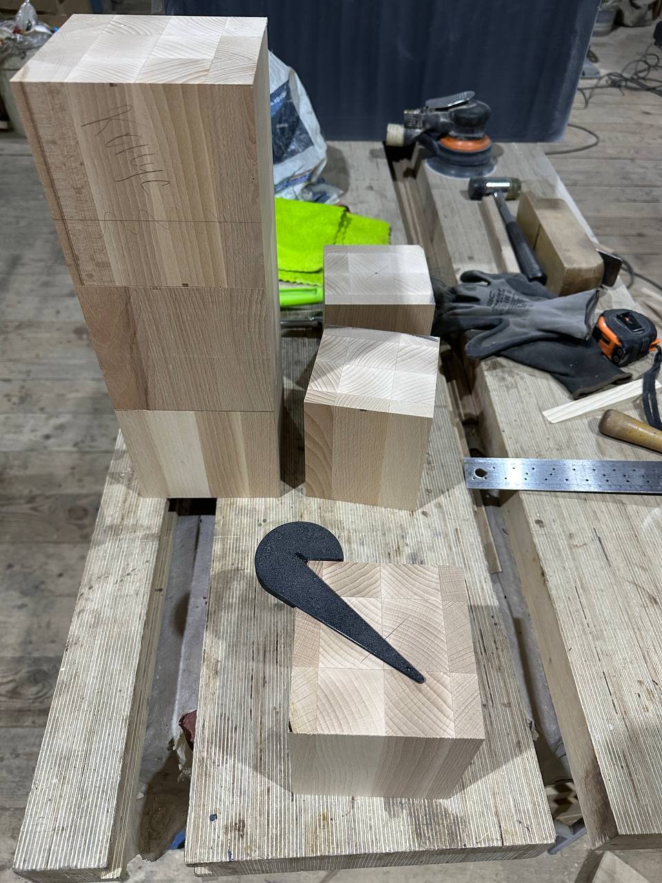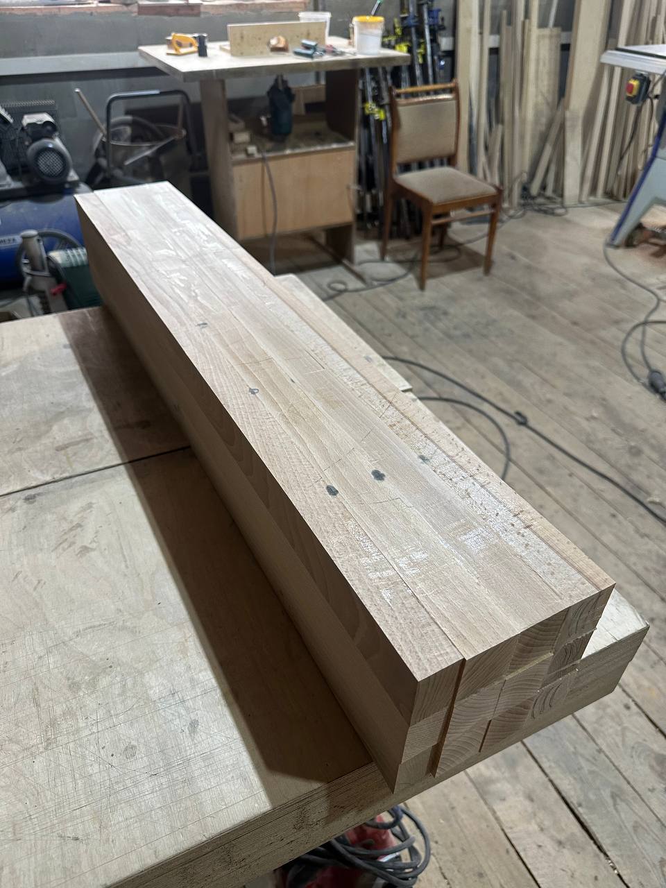 Ну что, ценные указания получены - мы знаем, что максимальный габарит у нас получается 130мм, поэтому идем строгать и клеить заготовку.