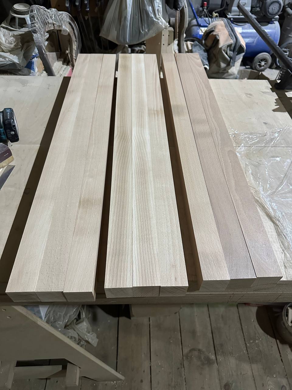 Материал берем простой – бук, так как делаем под покрытие эмалью «наглухо» и красивая текстура тут не так важна.