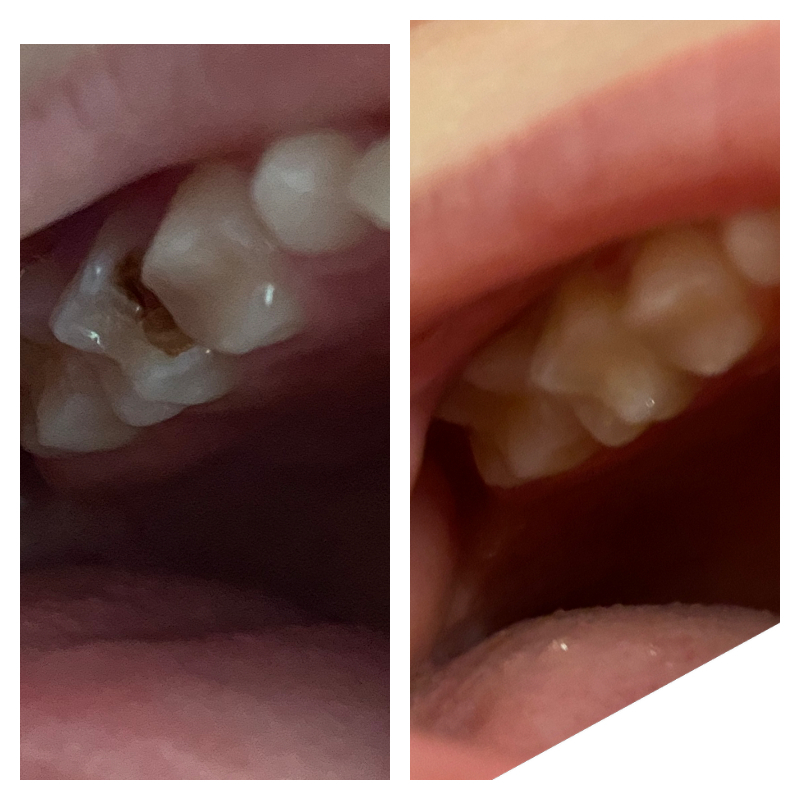 Причем за зубами тоже следим, этот зуб главный страдалец, его уже лечили в прошлом году. Но пломба выпала и пришлось переделывать в другой клинике (детская стоматология вообще отдельная история).