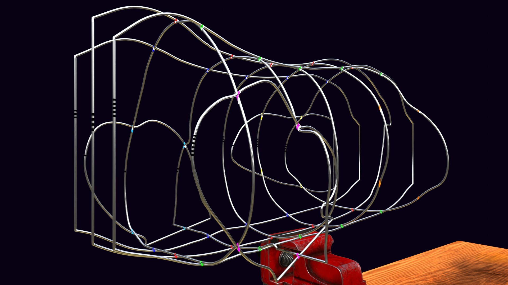 Первым делом нужно распечатать чертежи в масштабе. Их можно найти под моим обучающим видео на ютуб. Они в формате pdf. Затем листы склеиваются в единый чертеж. А уже по контурам на чертеже выгибается проволока. Затем гнутые элементы крепятся между собой при помощи электросварки.